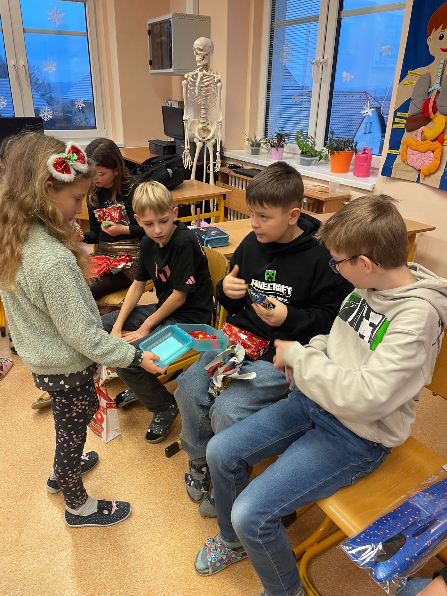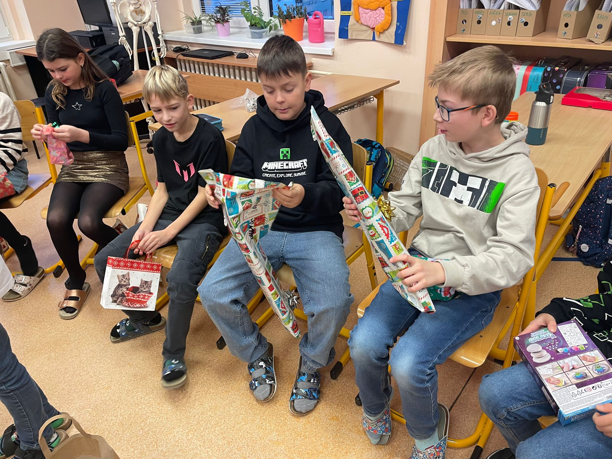 Vzhledem ke chřipkové epidemii před vánočními svátky, si žáci svého Ježíška užili až po novém roce. S paní učitelkou si předali dárky a také přivítali dárky od Ježíška ze školy. Všem se akce moc líbila a pohodové svátky tak zůstaly o chvilku déle i ve škole. 🙂