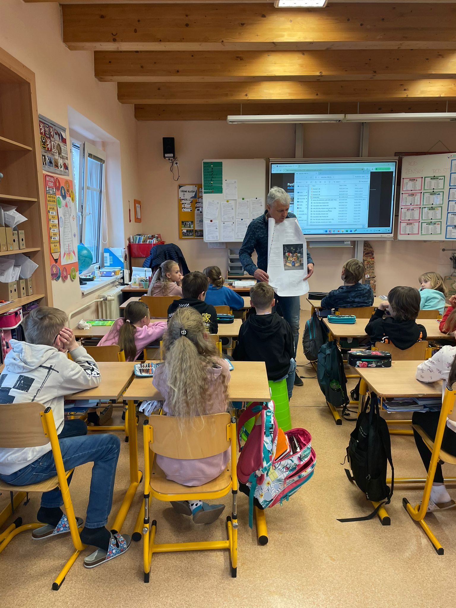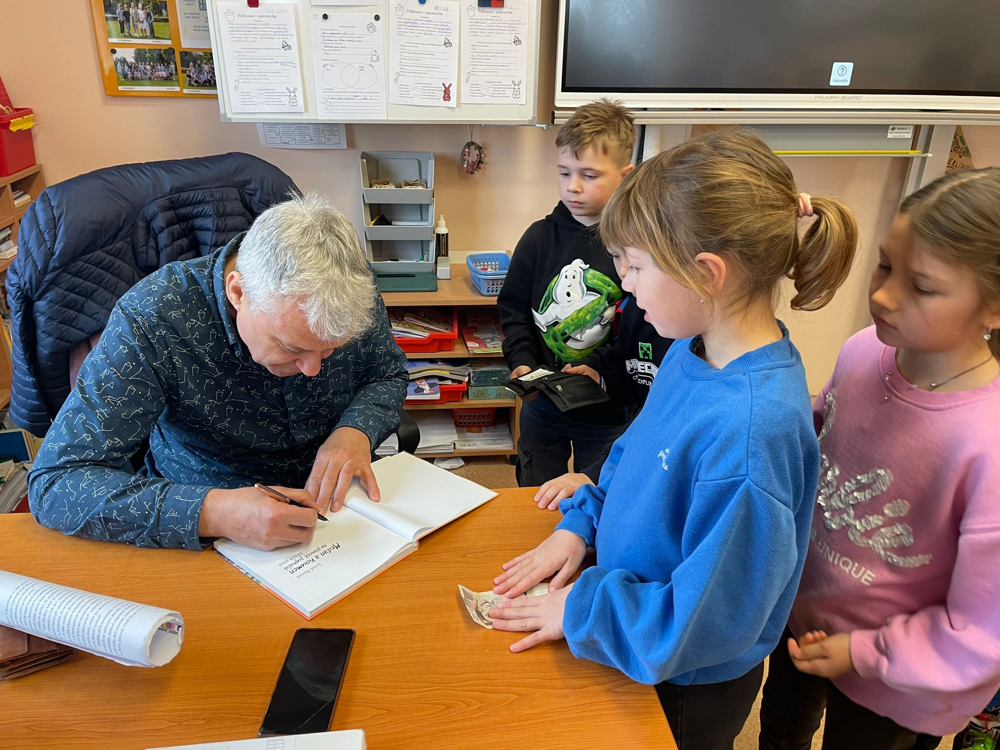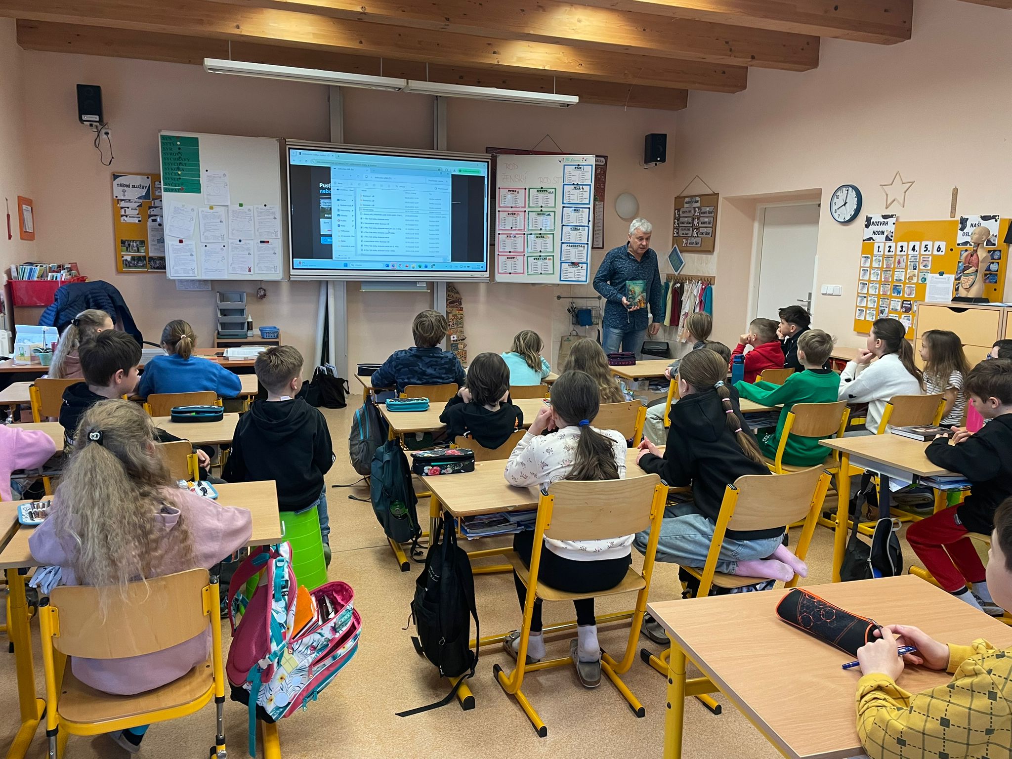 Dnes se uskutečnila beseda s autorem dětské literatury panem Josefem Benešem. Krásné, povídavé a poutavé vyprávění autora zaujalo žáky naší školy natolik, že si zakoupili literaturu i s následným autorským věnováním. Podpořili jsme tím opět naši knihovnu a čtenářskou gramotnost, které se věnujeme již třetím rokem.